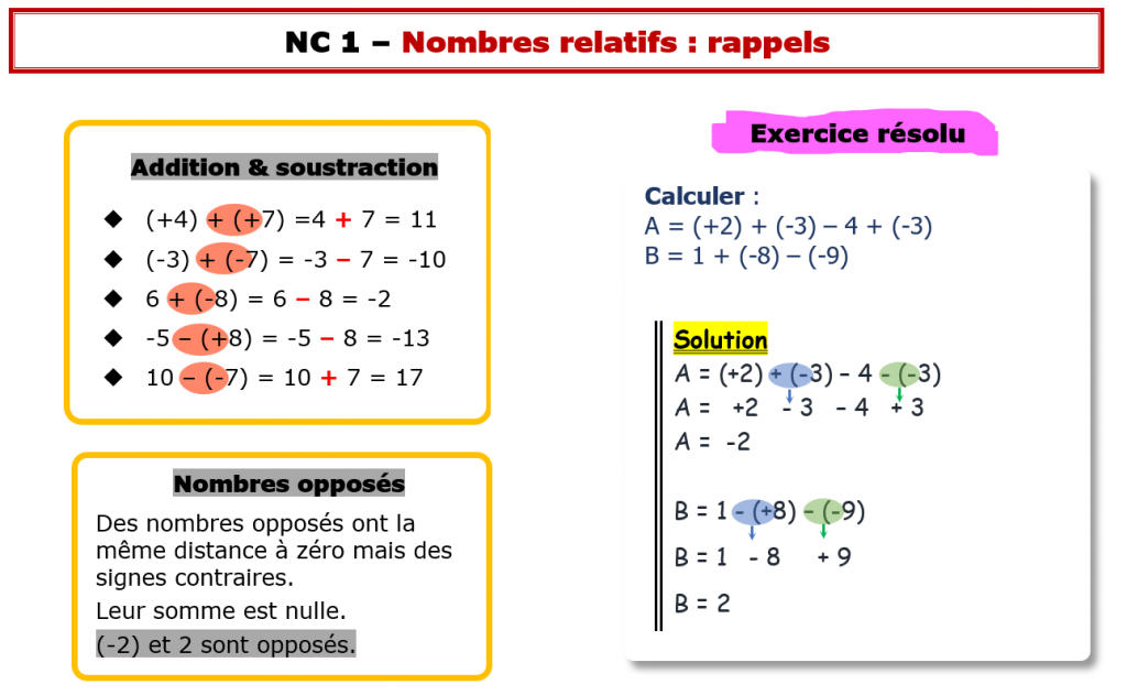 Cours-Additionner et soustraire des nombres relatifs (rappels 5e)