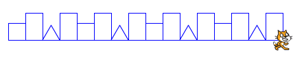 Partie 1 : Ouvrir le fichier frise2, puis compléter et reconstruire les scripts proposés afin que le lutin puisse tracer la frise ci-dessous :