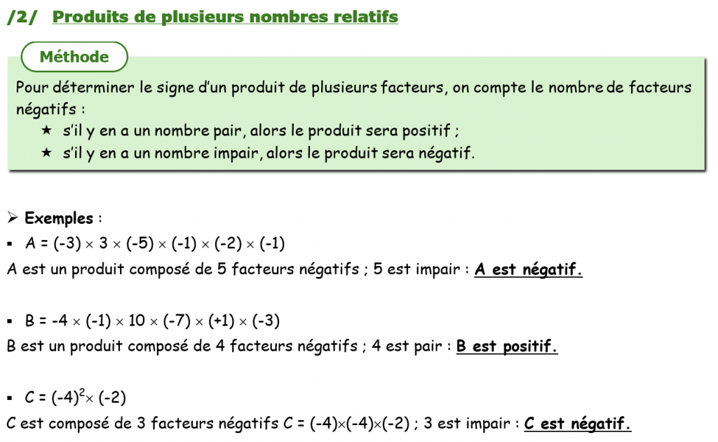 Cours-Multiplier/diviser des nombres relatifs (4e)