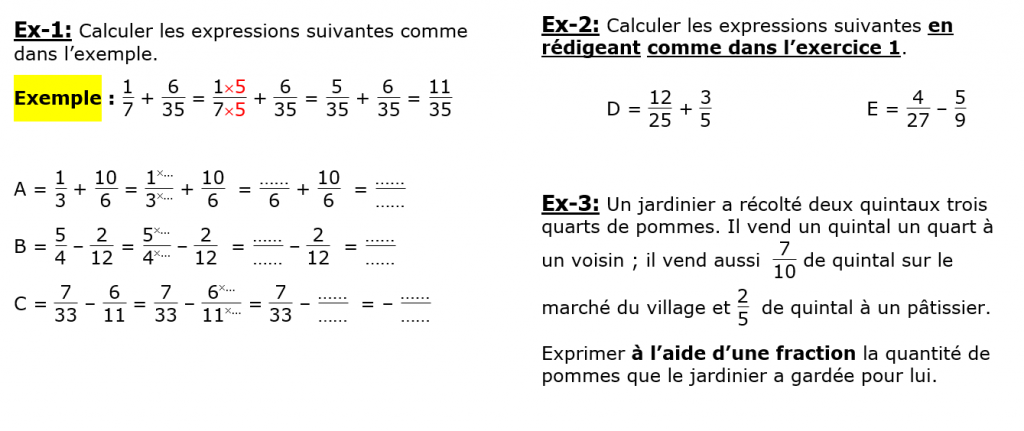 ►Étape 1 : Rappels addition – soustraction de rationnels. Faites les exercices ci-dessous sur le cahier d’exercices