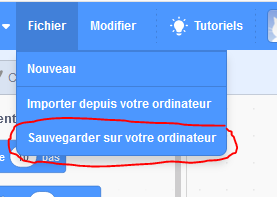 ►Dans scratch, cliquer sur SAUVEGARDER SUR VOTRE ORDINATEUR