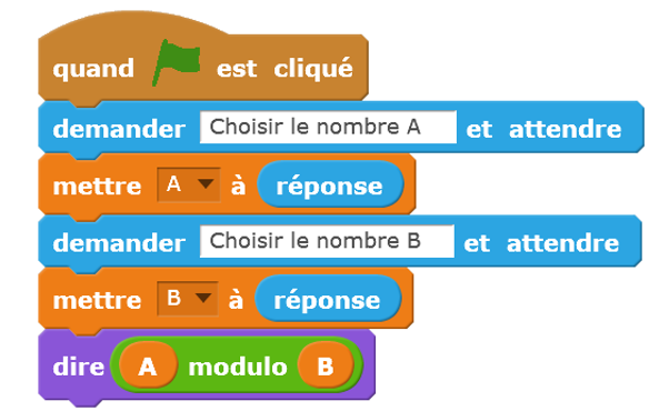 c) Modifiez le script (dossier public ou ici 🐱) de façon que le lutin annonce si B est un diviseur de A ou non.