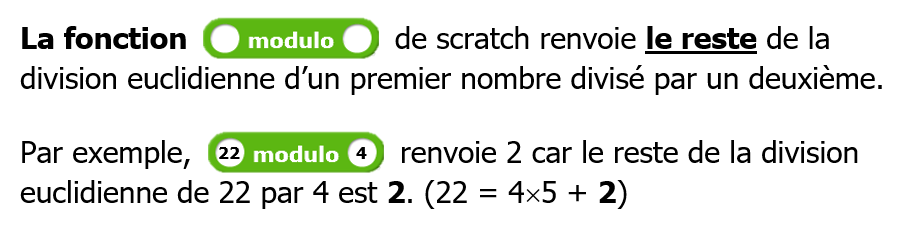 a) Cliquer sur le drapeau vert (à droite) puis vérifier que le reste de la division euclidienne de 16 par 5 est 1.