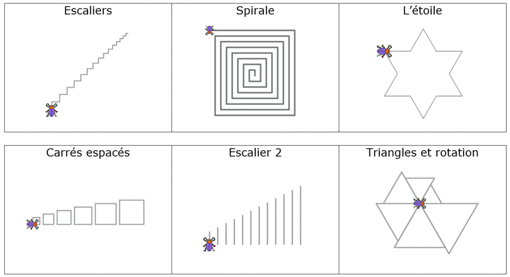 ►Ouvrir les fichiers suivants du dossier public, puis construire les scripts permettant au lutin de reproduire le tracé gris proposé.