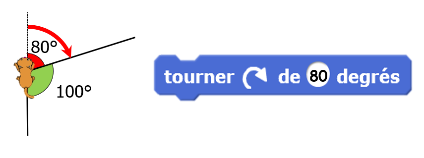 Sur le schéma ci-dessous, l’angle de rotation du lutin correspond à l’angle rouge et non à l’angle vert.