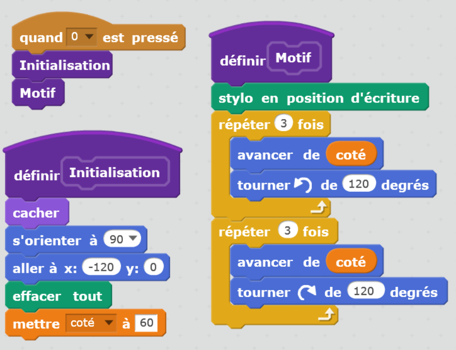 En utilisant les déclencheurs (1; 2; 3 et 4), créer les scripts permettant de dessiner les figures ci-dessous.